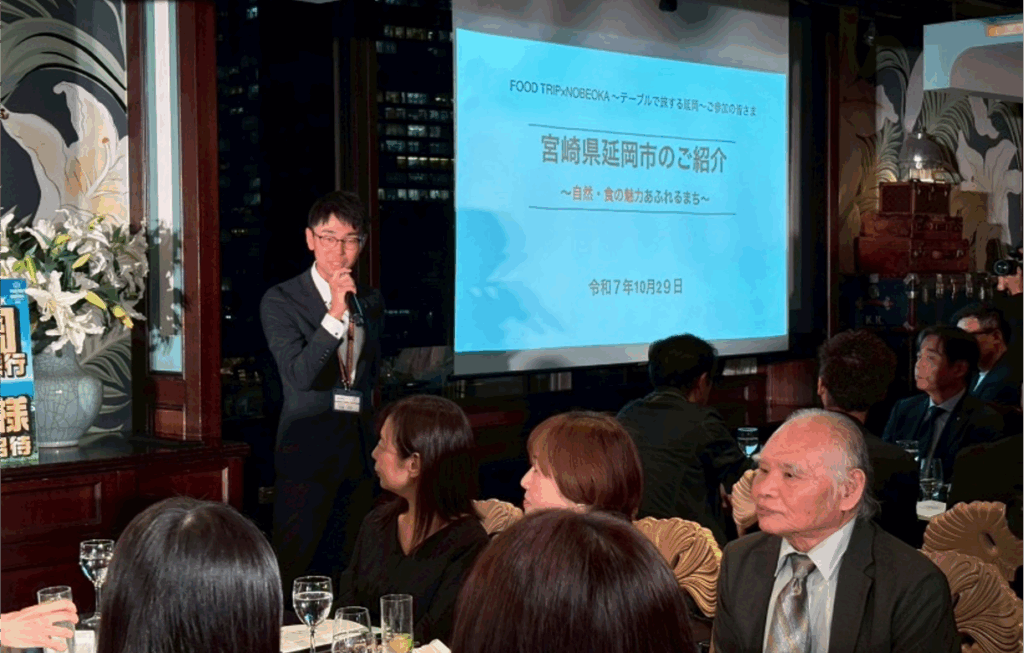 延岡の魅力ある「食」をキーワードに市外からの誘客推進に取り組む東九州バスク化構想延岡推進協議会(会長:三浦久知延岡市長)は、10月29日(水)に東京都丸の内において延岡の食材を使用した料理の試食や市内の観光情報などをPRするためのイベント「FOOD TRIP×NOBEOKA~テーブルで旅する延岡~」を開催しました。